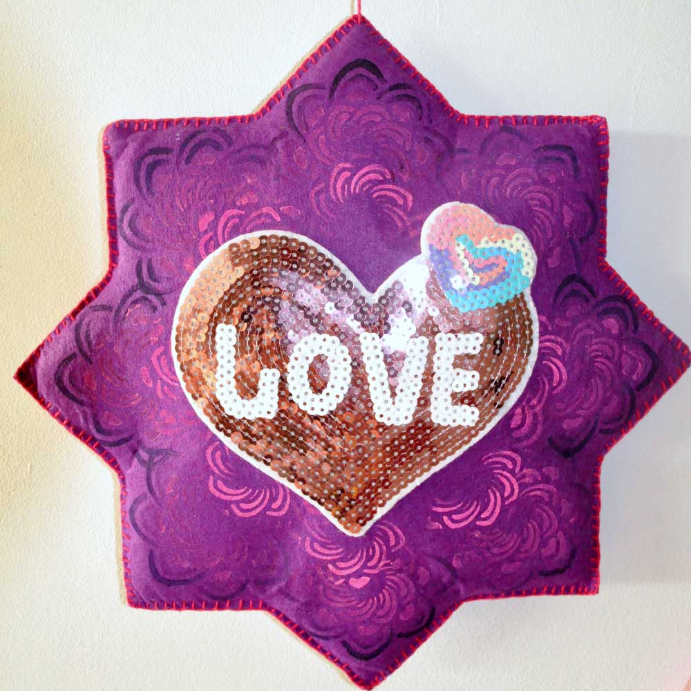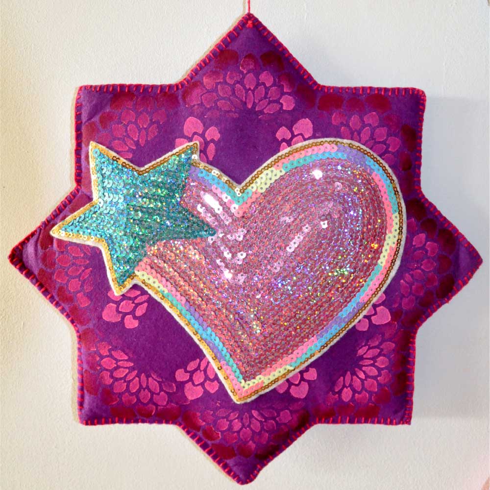 Cœur sacré en étoile est une œuvre originale d’Aurellll’Art, réalisée en 2024 à La Réunion. Cette création en broderie et couture en volume met en scène un cœur rayonnant inscrit dans une forme d’étoile, symbole de lumière, de guidance et de protection. Dès le premier regard, le Cœur sacré en étoile dégage une présence vibrante, à la fois douce et puissante.