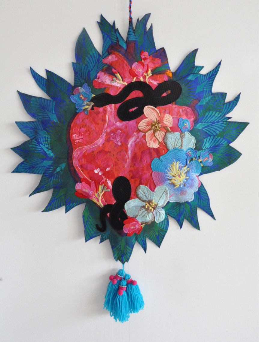 Cœur Tropical est une œuvre originale d’Aurellll’Art, réalisée en 2024, mêlant avec finesse la broderie d’art et la couture en volume. Cette création textile contemporaine incarne un cœur vibrant, organique et spirituel, symbole de transformation, d’énergie vitale et de lien profond entre le corps et l’émotion.